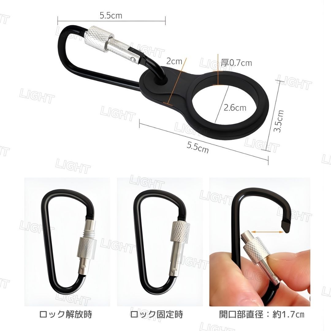 ・バッグやベルトに取り付けできるカラビナ付きで持ち運び便利
