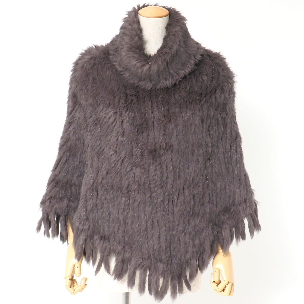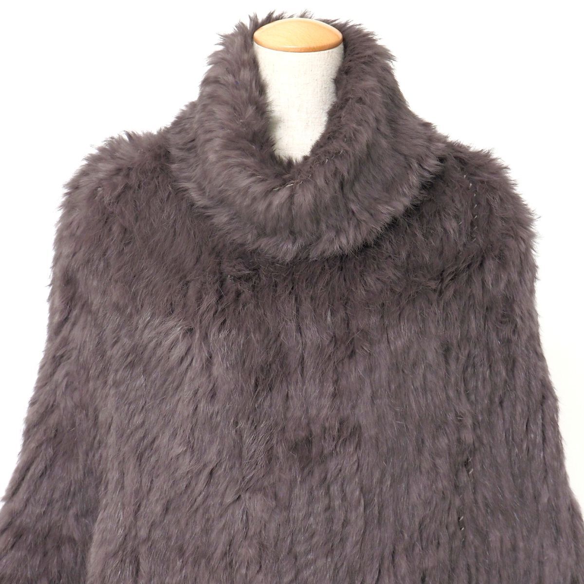 | GS5742#プラステ*PLST*ラビットファー*ファーポンチョ*タートルネック*フリンジ*プルオーバー*リアルファー*本毛皮*グレージュ系*サイズ2 | |||