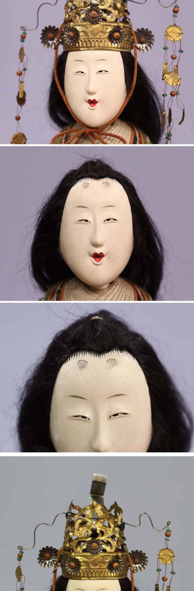 首の付け根に細かい胡粉のヒビがあります (画像上から10枚目参照)。