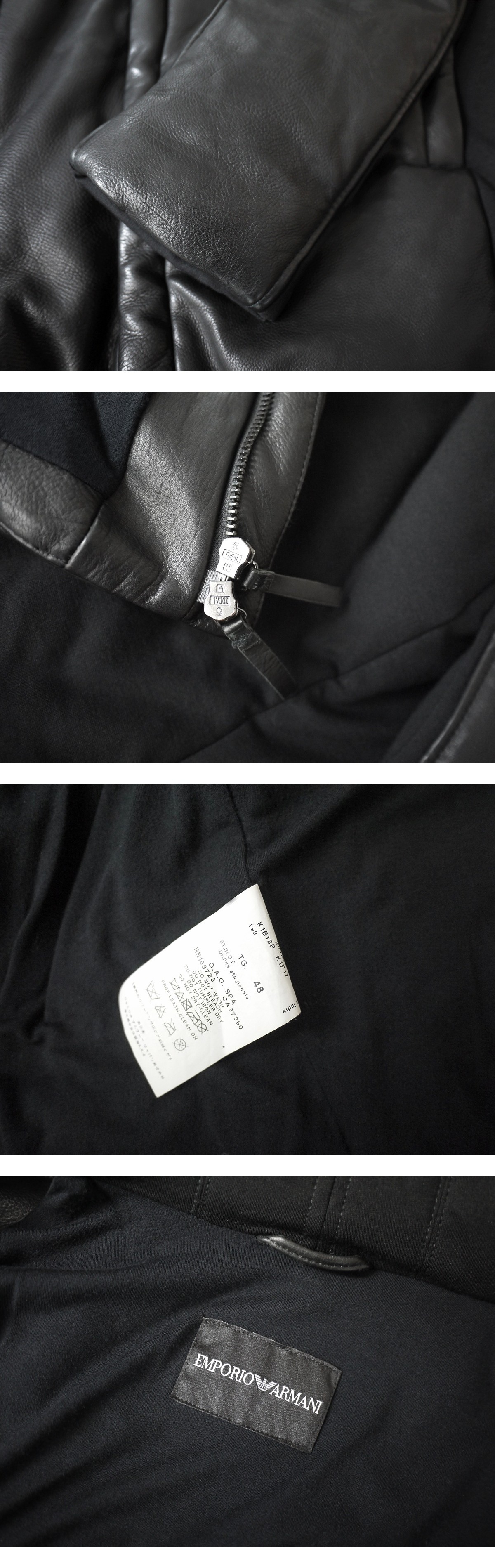 brand EMPORIO ARMANI made in Italy price \310,000(参考上代) material real calf leather 100% color Black サイズ 48 肩幅45(ラグランスリーブのため概算) 着丈63 袖丈66 身幅52(多少の誤差はご了承ください。) 状態 使用感のあまり感じられない美品となります。裏地含めダメージは見受けられず末永くご使用頂ける状態です。 |