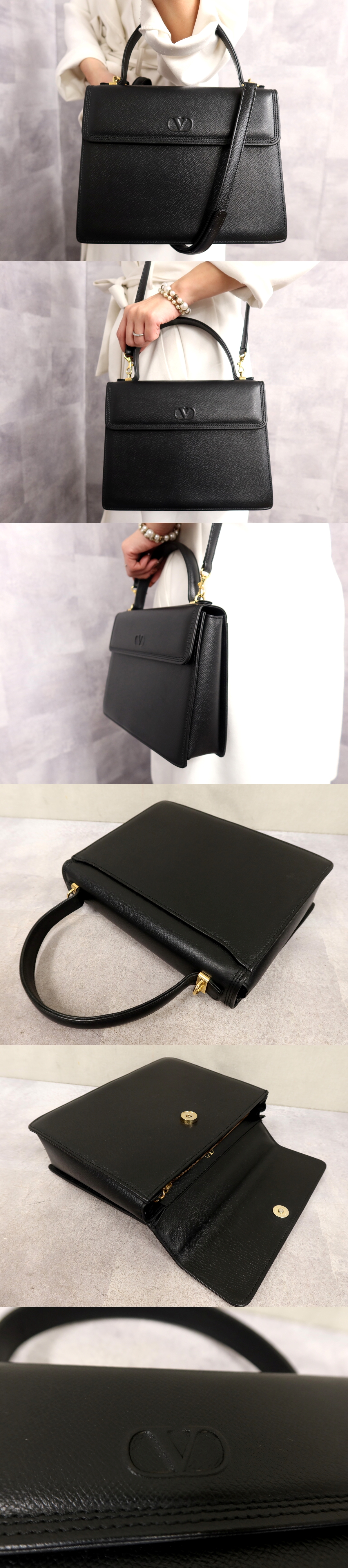 ●超美品●VALENTINO GARAVANI ヴァレンティノ ガラヴァーニ●エンボスロゴ●カーフ レザー 本革●2way ハンド バッグ●黒●G金具●Js63973