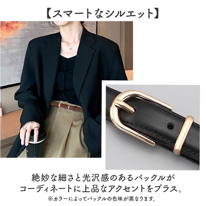 | 商品説明 | ・・【シンプルで使いやすい】 ・オンオフ使える万能アイテム♪「レディースベルト細身」が新登場。 ・【様々なコーデに対応】 ・カジュアルにもフォーマルまで幅広く合わせられる必需品。 ・【スマートなシルエット】 ・絶妙な細さと光沢感のあるバックルがコーディネートに上品なアクセントをプラス。※カラーによってバックルの色味が異なります。 ・【本革のような質感】 ・ほどよい厚みのあるスプリットレザーを使用。軽くて高級感のある仕様◎ ・【長さ調整可能】 ・自分のサイズに合わせて簡単に調整でき、コーディネートをサポート♪ |