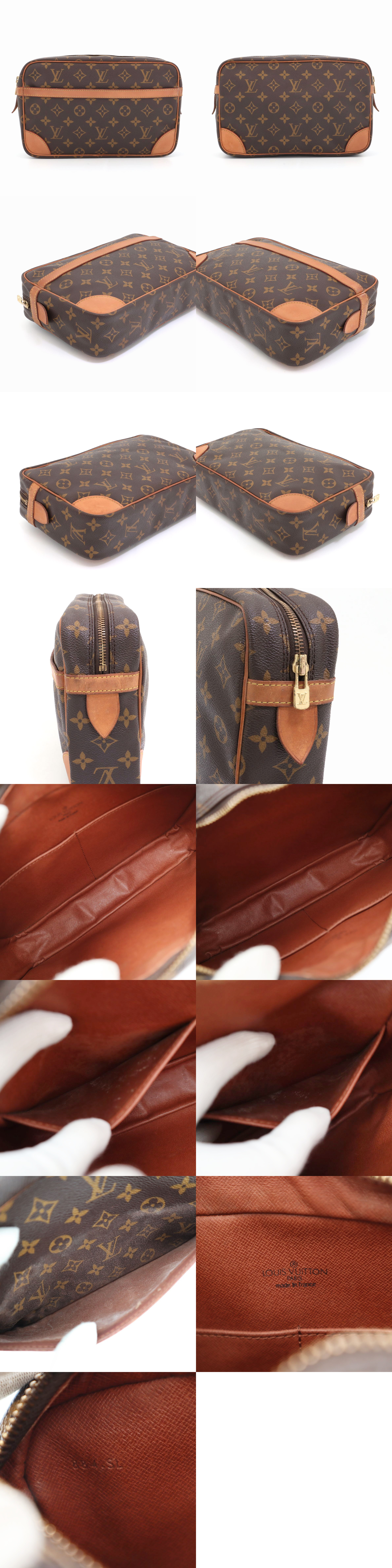 ※若干の誤差はご了承くださいませ。 仕様 :ファスナー開閉式 外側ポケット :オープンポケット×1 内側ポケット :オープン小ポケット×2 カラー :モノグラム ブラウン 付属品 :なし 素材 :レザー 製造国:made in France シリアル番号:884SL 商品型番:M51845 |