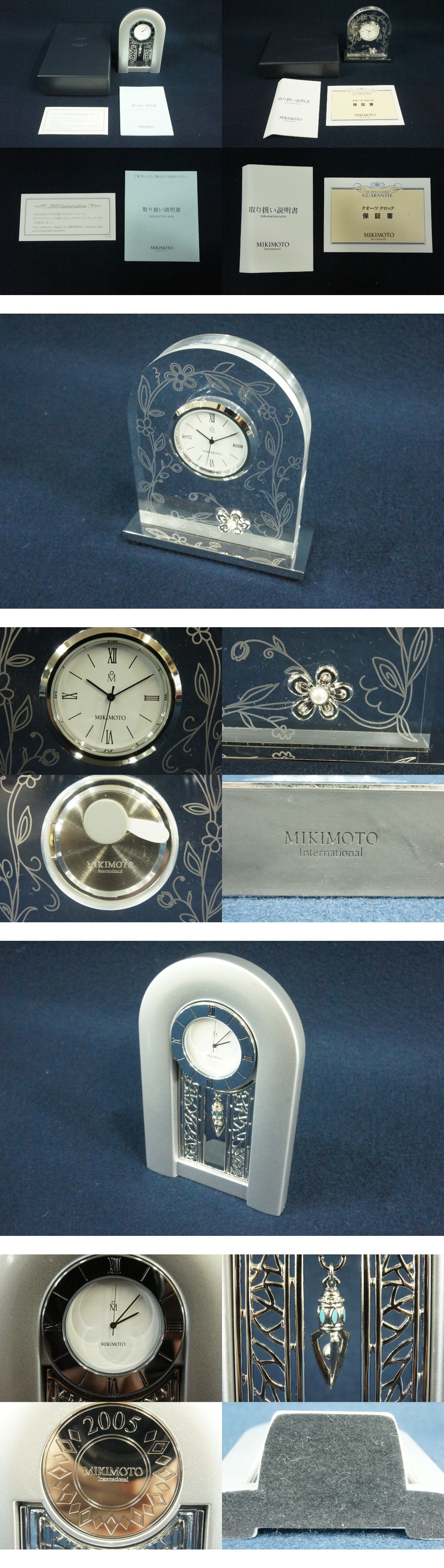 ●MIKIMOTO ミキモト クロック2点セット 2005年イヤーシリーズ・クオーツクロック 置時計 傷や汚れ有 動作未確認 元箱