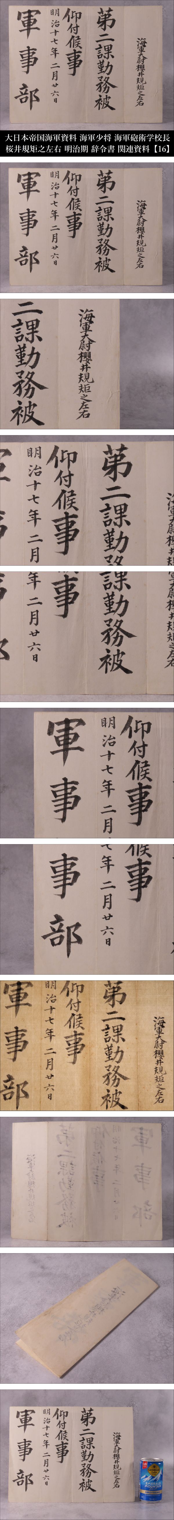 【ONE'S】大日本帝国海軍資料 海軍少佐 海軍砲術学校長 桜井規矩之左右 明治期 辞令書 関連資料 明治十七年二月二六日 【16】 | |||