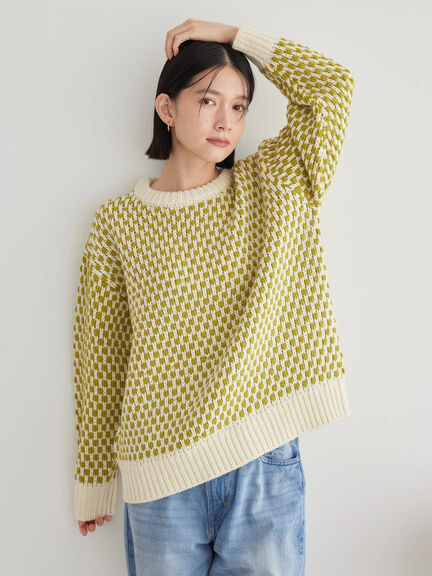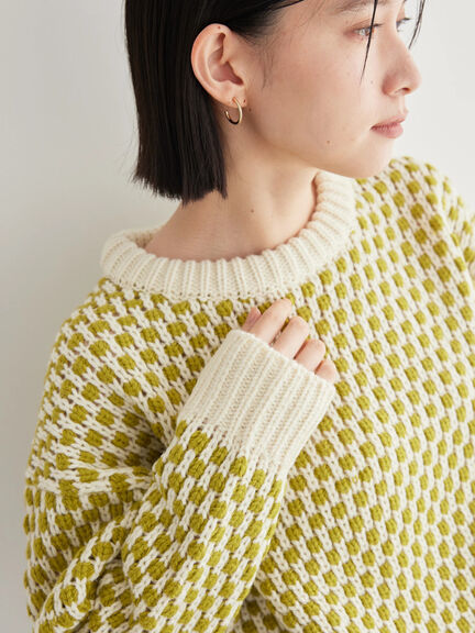 ポコポコとした配色デザインがレトロで可愛らしいローゲージニットプルオーバー。