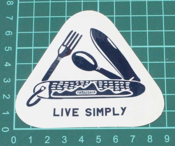 パタゴニアのLIVE SINPLY(リブ シンプリー)、ポケット ナイフモチーフのステッカー、光沢バージョンです。