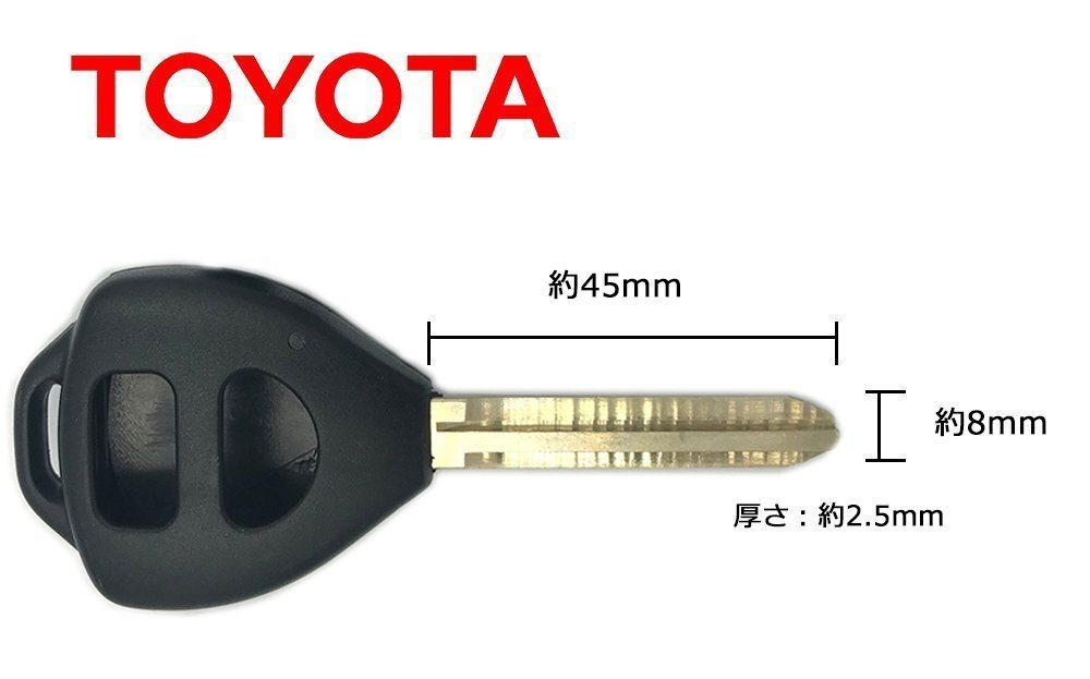 ブランクキーに関しましては、 同年式・同車種でもオプション等により数種類ございますので 車種、年式、型式などからは1種類に特定できず、 お手持ちのマスターキーと【形状、サイズ】を見比べてお客様に 判断して頂く必要がございます。 ![]() ![]() ※こちらの商品はご注文受付後のキャンセル、返品は不可となります。 ※キーナンバーが分からない場合は未カットのブランクキーの発送となりますので、ご注意くださいますようお願い申し上げます。 キーレスのボタンが2ボタン仕様のブランクキーです。 スペアキー、鍵の折れ、割れ、傷汚れ等にお安く改善が可能です。 内部のキーレス送信機は付属致しておりませんので純正のものを流用下さい。 社外品のため、メーカーロゴは入っておりません。 車種や年式で数種類ございます。 当店では車種・年式・車検証では特定できかねますので、 お手元の鍵と販売ページの写真、リモコン部及び鉄のブレード部の形状を見比べて お客様にて判断していただくようお願い申し上げます。 ・ボタン数:2個 ・参考キーナンバー (キーナンバーだけでなく実際の鍵と掲載画像を必ずご確認ください) 50000 - 69999 ・参考車種 トヨタ:ハイエース ヴォクシー ノア アルファード ヴィッツ アイシス ヴァンガード カローラアクシオ カローラフィールダー カローラアクシオ カローラルミオン オーリス など ・サイズ(キー部分):長さ:約45mm 幅:約8mm 厚さ:約2.5mm ・当店では車種・年式・車検証で特定できません。 画像のキー形状とカバー形状、サイズをお手元の鍵と比較しご確認ください。 ・イモビが付いている車種は送信機の中に組み込まれていますので、そのまま移植すれば問題なくエンジン始動できます ※ 一部イモビがプラスチック内等に埋め込まれている場合移設・加工が必要です ![]() ■キーナンバー確認方法 ・新車購入ならキーナンバーが書かれたプレート ・キーナンバープレートがない場合は運転席側のドアのシリンダー ・マスターシリンダー などに数字が刻印されています。 上記以外の場合はディーラーなどにお客様ご自身でお問合せ下さい。 ※キーシリンダーの取り外しに自信のない方は整備工場や専門店様にご依頼ください。 ※ディーラーで調べることは可能ですが、別途費用が掛かる場合がございます。 ※取り外したことにより発生した事故・故障・損害は一切保証できませんので、お取り外しは整備工場などで行い、あくまで自己責任の上で取り外しを行ってください。 (作業ミスなどの責任は負いかねます)。 ご注文受付後、キーカットに進みます。 商品の特性上、ご注文受付後はキャンセル・返品など承りかねます。 ご了承のうえご注文をお願い致します。 通常は問題なく純正キーと同様に使用出来ますが、お客様のシリンダー(ドア・イグニッション・トランクなど)の使用状況により、回らない、回転が重いなどの症状が発生する場合がございます。 ![]() ![]() ・当店ではお車への適合の確認や取り付けに関するサポートはおこなっていませんので、お車への適合やご使用方法につきましては専門店さまなどにご相談ください。 ・製造・流通過程(商品同士の擦れ)において商品に多少の擦り傷や汚れ等が発生する場合があります。その点はノークレームでお願いします。 ・当商品はインポート商品の業者様向けの製品(バルク品)のため、メーカー保証書や説明書などは付属していません。 ・梱包は装飾された箱ではなく簡易包装での出荷となります。 |