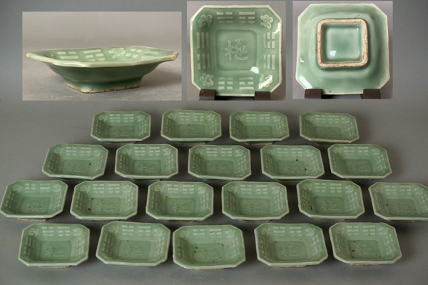 | 【 三田 青磁 算木手 角 小皿 20枚 箱付き】 |
