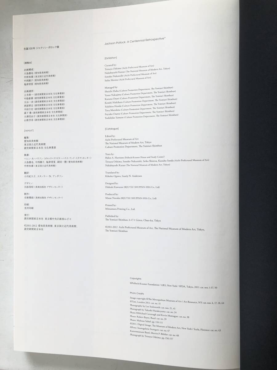 | 図録 生誕100年 ジャクソン・ポロック展 展覧会作品集 作品解説 1930年-1956年 愛知県美術館 読売新聞東京本社 2011年 2509-C109-01LL | |