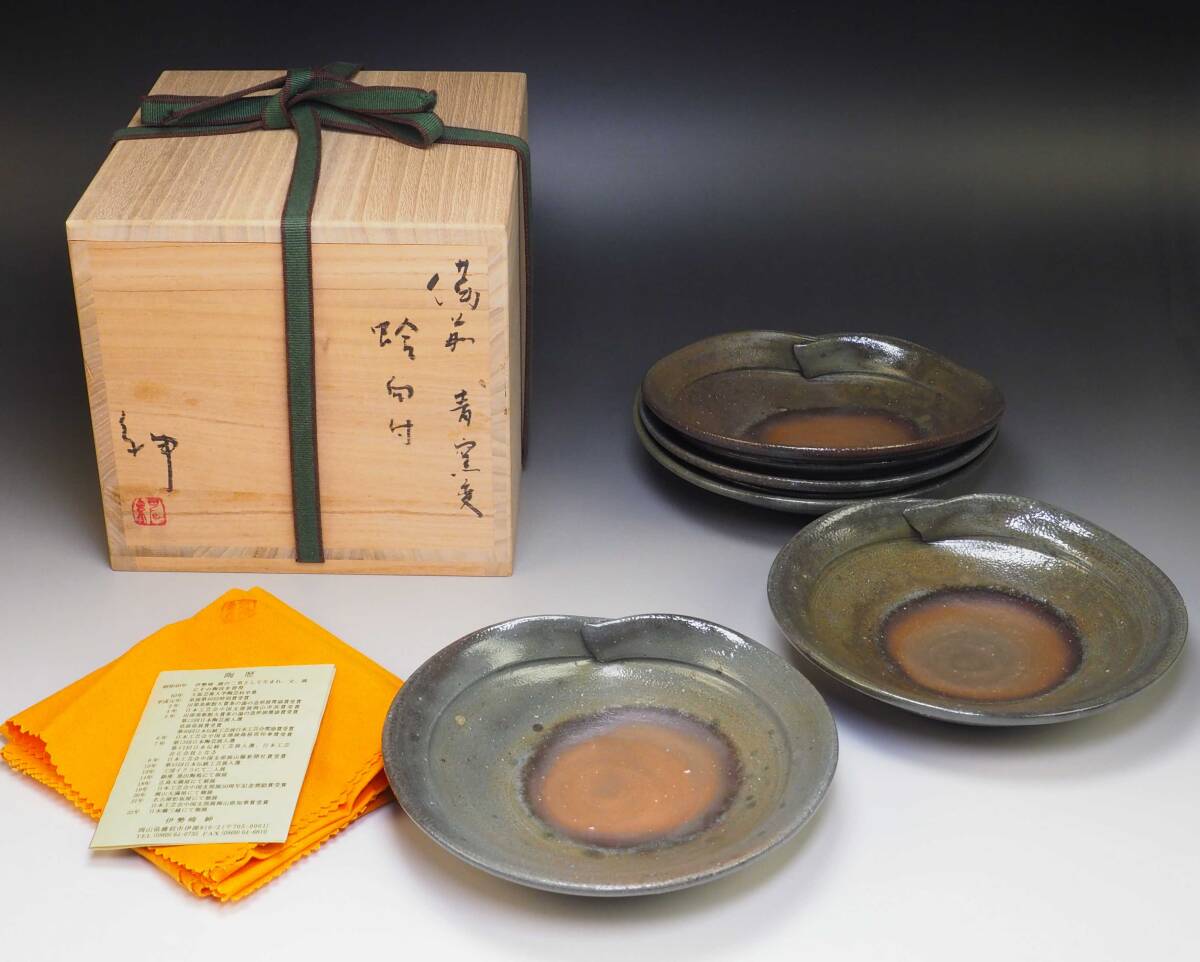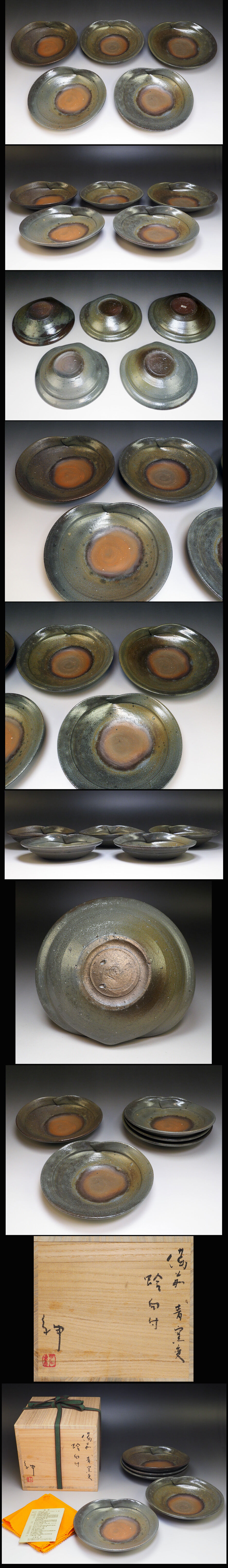![]() 伊勢崎紳の青窯変希少作「備前青窯変蛤向付」です。 サイズ:約 径 17.5cm 高 4.3cm(5客同等サイズ) 共箱・共布・栞つき 作品状態:外傷キズは無く美品です。(目視確認です。) こちらの作品は真作保証の安心頂ける作品であることをお約束いたします。 不明な点は、入札前に質問等でご確認下さい。 伊勢崎紳 昭和40年伊勢崎満の二男として生まれ、父、満にその陶技を習得 昭和63年大阪芸術大学陶学科卒業 平成元年県展第40回特別賞受賞 平成2年田部美術館大賞茶の湯の造形展奨励賞受賞 平成4年日本工芸会中国支部展岡山市長賞受賞 平成5年第12回日本陶芸展入選・第40回日本伝統工芸展日本工芸会奨励賞受賞 平成6年日本工芸会中国支部展島根県知事賞受賞 平成7年第13回日本陶芸展入選・第42回日本伝統工芸展入選、日本工芸会正会員となる 平成9年日本工芸会中国支部展山陽新聞社賞受賞 平成10年第45回日本伝統工芸展入選 平成19年日本工芸会中国支部展50周年記念奨励賞受賞 | |||