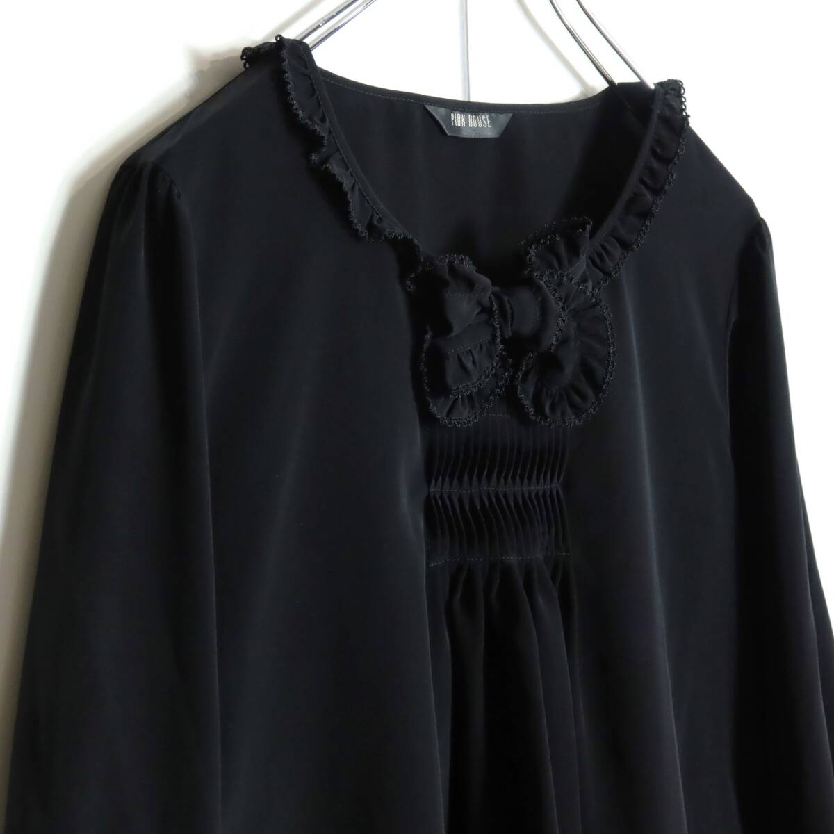 | 商品説明 | 【実寸約】肩幅39袖丈60バスト98着丈52(cm) 【サイズ表記】なし。実寸をご参照ください 【素材】 ポリエステル100% 【状態】使用感少なめの美品 【デザイン】黒系 大きなリボンが大人可愛い長袖ブラウスです。(BHT)ギャザーの入ったふんわりフォルム♪ ピンタックやピコレース、ピコフリルなどピンクハウスらしい飾りが満載♪ 薄手/無地/2024年製 |