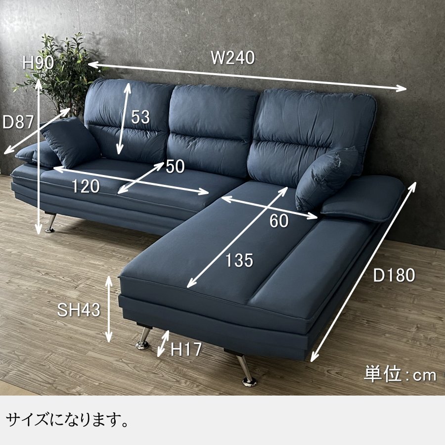 | ◆ サイズ | 幅 240cm × 奥行き 180cm × 高さ 90cm 座面高 43cm |