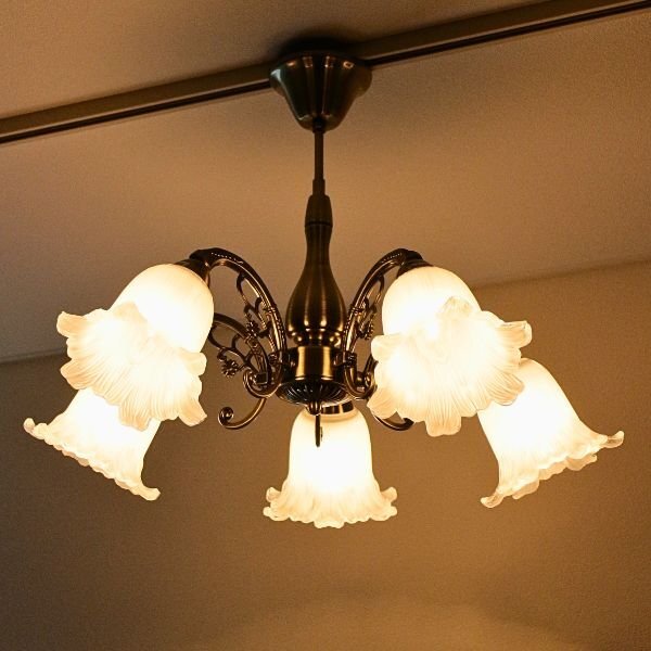 | アンティーク風デザインの アイアンとガラスシェードの 5灯のシャンデリアランプです アンティークブロンズカラーの 花や蔓のデザインのアームは 可憐で繊細な雰囲気 花型のすりガラスのシェードから あふれる光が 心をリラックスさせてくれる やわらかくやさしい灯りです リビングはもちろん 玄関や廊下などにもオススメです 商品名 : ロクサーヌシャンデリア 5灯 商品番号 : abk6677 全体サイズ(cm) : 幅62×奥行62×高さ45 電球 : E26/40W(電球付き) 材質 : アイアン ガラス 重量 : 4kg 生産国 : 中国 ※ガラスシェードのみ簡単なお客様取り付けとなります ※アイアンやガラスの小傷等はご容赦ください ※わざと色むらを施し、アンティークな雰囲気を表現した商品です ※ディスプレイによる色の違いはご了承下さい |