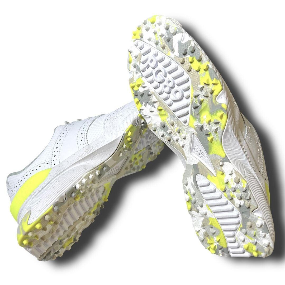 これまでにないようなカモパターンをプラスして鮮度ある表情に仕上げた、ウィングチップTYPEスパイクレスシューズ。ウィングチップがもつ華やかさはそのままに、軽量化とコンフォート性を追求した履き心地の良いスパイクレス仕様のゴルフシューズです。しっかり足にフィットするインソールと構造で、長時間の着用でも快適な歩行と履き心地を体感できます。また、スイング時の安定性を強化し大きなパフォーマンスを発揮できるように、地面をしっかり掴む様な色々な形状でデザインされたグリップ性の高いアウトソールを使用しています。見た目にもスマートな雰囲気なので、キレイ目なコーデにも合わせやすいのもポイントです。| 出价者 | 信用 | 价格 | 时间 |