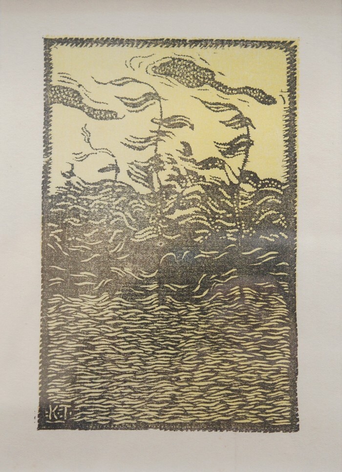 白熊 田中恭吉「作品(病める夕(月映掲載同作品・機械刷))」大正14年(1925)詩と版画 第11号より1葉、まず出ません。真作保証、