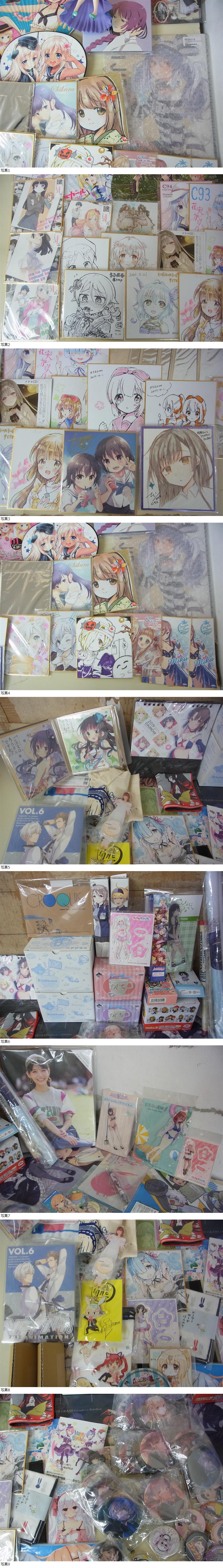 | 商品説明 | 当オークションページにご興味を持っていただきありがとうございます。 宜しければ商品説明などご覧いただきご検討をいただければ幸いです。 出品物はアニメグッズまとめになります。 ただいまアニメグッズ他、多数出品しておりますのでよろしければ当方出品ページをご覧ください。 下記に商品状態、情報/作動確認内容などお伝えいたしますので、宜しければご覧ください。 ―商品状態― 様々な状態/ジャンルの物が見受けられます。 中には未開封品と思われるものや限定品のような物も見受けられました。 一見してコミケ関連の物が多数見受けられました、掲載写真にてご確認下さい。 二次流通品ですので保管に伴う小傷/汚れがある場合がございますのでご了承下さい。 まとめての出品ですので1点1点の保証は致しかねますのでご了承下さい。 お伝えできていない状態に付きましては、掲載写真をご参考下さい。 ―商品詳細― 商品名:アニメグッズまとめ 全てまとめての梱包/発送となりますのでご了承下さい。 個人保管/中古品ですので基本的にはノークレーム/ノーリターンでお願い致します。 <出品物> アニメグッズまとめ 画像に写っております物が全てです。 表題()内のアルファベット/文字などは出品物の管理番号ですので、商品とは関係ございません。 下記に注意事項/送料等掲載させて頂いております、ご入札をご検討いただいている方は長文となりますが、最後までご覧くださいませ。 |