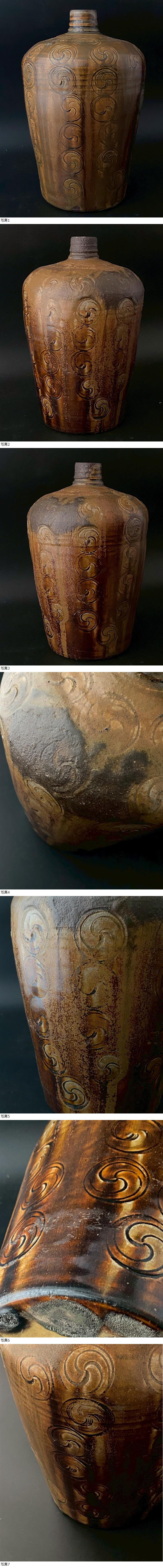 この度は数あるオークションからご覧いただき、ありがとうございます。 時代「瀬戸鉄釉巴文瓶子」 高さ28.5㎝ 印花文 です。 ■サイズ(約)■ 高さ28.5㎝ 直径18㎝ ■商品状態■ こちらは古い物となり、商品状態・時代感を損なわぬ様、乾拭きなどの簡易清掃にて出品しております。 大きくカケやワレなどは見受けられませんが、古い物となりますため、時代・保管・使用に伴うスレ、傷、汚れ等あるものとご承知おきください。 詳細な状態につきましては画像にてご判断頂きご入札をお願い致します。 ※下記、発送詳細・支払い方法・その他、注意事項をご一読ください。 |
