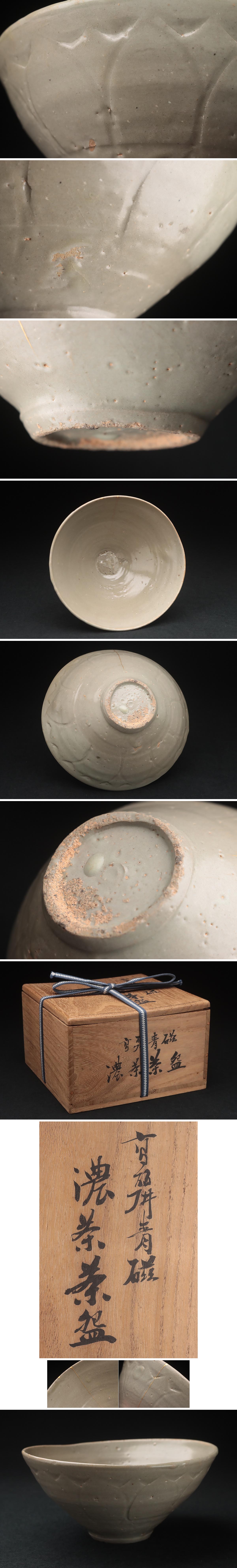 | ◆ 朝鮮美術 高麗青磁 濃茶茶碗 径16.7cm 木箱・高麗青磁陽刻蓮弁文鉢・高麗青磁鉢 朝鮮古陶磁 朝鮮古美術 ◆