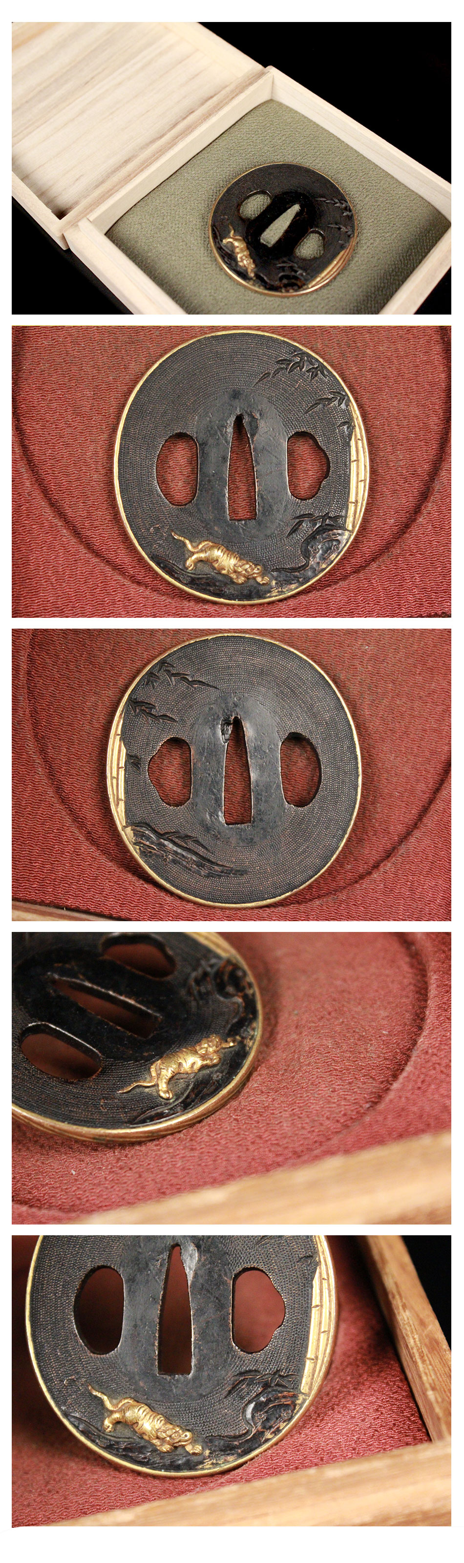 | 【喜楽】赤銅金覆輪 竹虎 小鍔 刀装具武具!! 木箱 112836 | - |