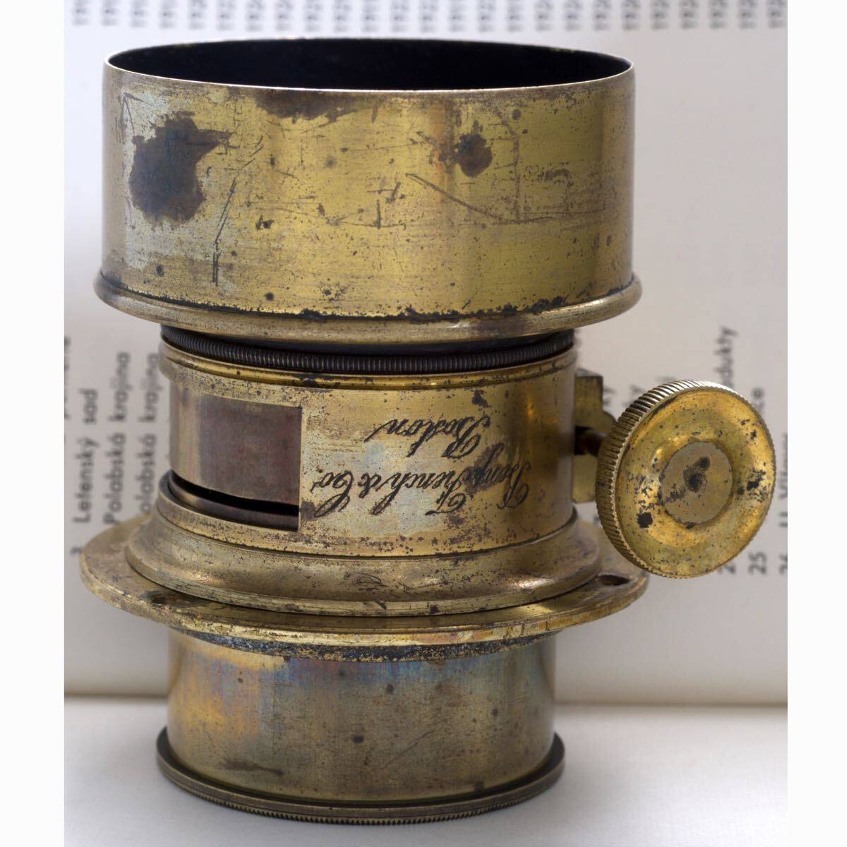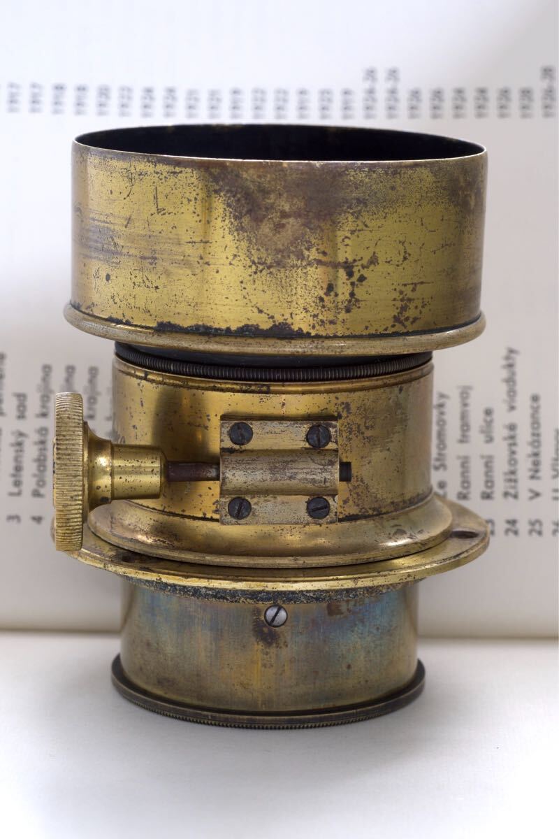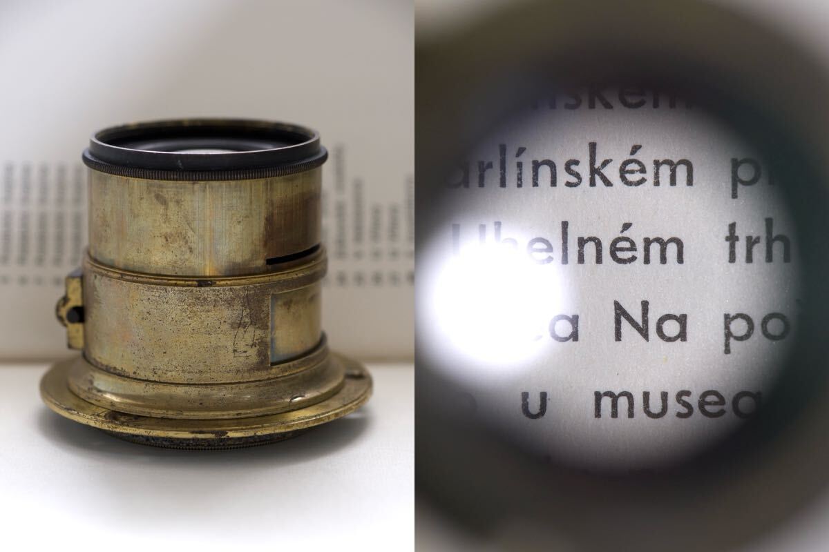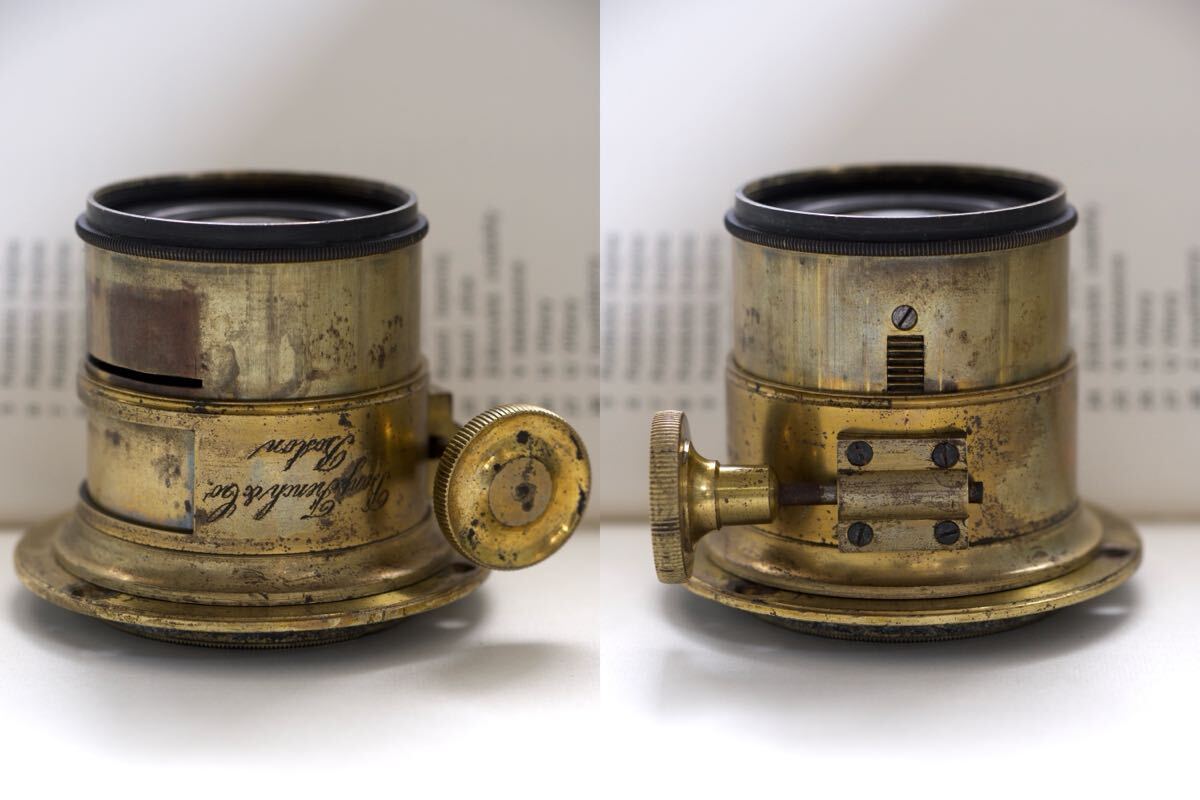 ご覧いただきありがとうございます。 出品はBenj. French & Co. Boston ペッツバールレンズです。 フード、座金が付属します。 焦点距離は約125mm(撮像素子からウォーターハウススリットまで)、レンズフランジバック約115mm、F4程と思います。 Benj.French & Co. Boston と刻まれています。 おそらく19世紀中頃の品でしょう。 米Benjamin French社はDarlotとVoigtlander&Son製品をアメリカ唯一の販売代理店として1850年代から販売を開始したこと、19世紀後半Darlot社が英Stereoscopic社のステレオカメラ用に製作したレンズと酷似しているので、こちらのレンズはDarlotのOEM製品の可能性が高いです。 大振りなフードが非常に格好良くラック&ピニオンの少しゴリゴリとした焦点合わせや絞り板をご自分でお作りになったりしてお楽しみいただけると思います。 ペッツバールレンズで焦点距離が短いものは少ないのでこちらは実用的なお品と思います。 ・外観 総真鍮製で金ニスが塗ってあり所々剥げてはいますが真鍮生地の茶色から虹色の変色が大変美しいです。 フード開口部に僅かな歪みがあり、ネジ込みが少し重いところがありますが問題なく装着可能です。 後年フード内部、鏡胴内部に反射防止剤が塗布してあります。 出品の際、鏡胴の汚れは拭いてありますので清潔です。 真鍮製の為、商品撮影時より色味が変化している場合がございます。 ・機能 ラック&ピニオンとしてはスムーズに動くと思います。(構造上ヘリコイド程滑らかではありません) ・光学 拭きキズはありますがクリアと思います。 前群にバルサム劣化と思われる茶色の点状のものがあります。 ・作例 フルサイズ ・マウント 座金用ネジ 49mm 0.75使用可 ・レンズ構成 3群4枚 ペッツバール ・寸法 レンズ約55.3mm フード約26.2mm(ネジ除く) フード最大外径約61.8mm ・重量 約280g (レンズ、フード) 以下お取引条件となりますので、退屈ですが重要ですのでご入札前に必ずお読みいただくようお願いします。 ■発送 出来る限りすみやかに行います。お支払い確認後に梱包を開始する為と予定が不規則な場合がありますので、念の為お日にちを2-3日いただいております。 ■お支払い・受取連絡 落札後、到着からそれぞれすみやかに行っていただくようお願いいたします。 48時間お支払いがない場合は落札者様のご都合として取消させていただき「いたずら入札トラブル申告」、48時間受取連絡がない場合は「違反利用者申告」をさせていただきますのでご了承ください。 申告が適用されますと、LINEヤフー株式会社により不当な報復評価は削除されアカウントに対し適切な対処をされますので責任ある入札をお願いいたします。 *いたずら入札が多発しておりますので、トラブル防止策として評価内容からこちらの判断で入札を削除する場合がございますのでご了承ください。 ■ 中古品へのご理解 出品物は決して新品の様な完璧な状態ではありません。中古品は勿論、新古品でも経年劣化や保管時のキズ等を考慮していただく必要があります。画像をよく見られて慎重にご判断の上、古品にご理解いただける方のみご入札をお願いします。 出品物の状態等をわかりやすく正直にお伝え出来る様に努めておりますが、機材や環境による画像の色合いの違い、寸法の誤差、言葉の表現は主観によるところも大きいので多少の違いがありますことご了承ください。 ■返品・キャンセル 承れませんのでご入札前にご不明点は必ず質問してください。 オークション終了間際のご質問にはお答え出来ない場合があります。 ■梱包 資材は手元にある再利用品を使用させていただきますが、品物が安全に配送されるよう梱包します。 長文お読みいただきありがとうございます。 ぜひよろしくお願いします。 |