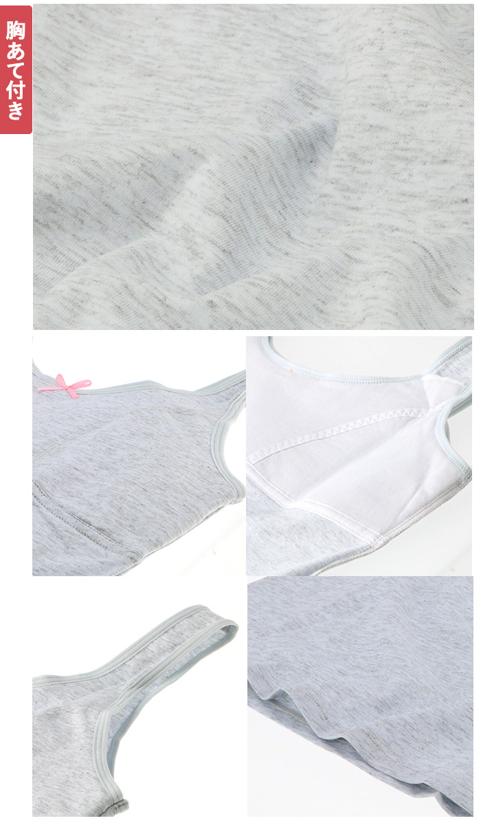 | 商品説明 | ・パステルカラーがやさしい雰囲気♪成長期の女の子にぴったりなタンクトップ型の肌着が新登場。 ・表生地には、柔軟加工を施したコットン95%+ポリウレタン5%の混紡生地を使用。 ・伸縮性・通気性・吸水性に優れ、やわらかな肌ざわりが快適な着心地。 ・またお洗濯しても毛玉になりにくく、型くずれしにくいのも嬉しいポイント。 ・胸の部分の内側には胸あてがついているので、バストの膨らみが気になり始めた年頃の女の子にぴったり。 ・胸あては伸縮性に優れた生地を用いているから締め付け感がなく、やさしくサポート。 ・また胸あて部分の内生地にはコットン素材を用いているので、デリケートなお肌にもやさしい仕様。 ・胸元の小さなリボンがアクセントに。 |