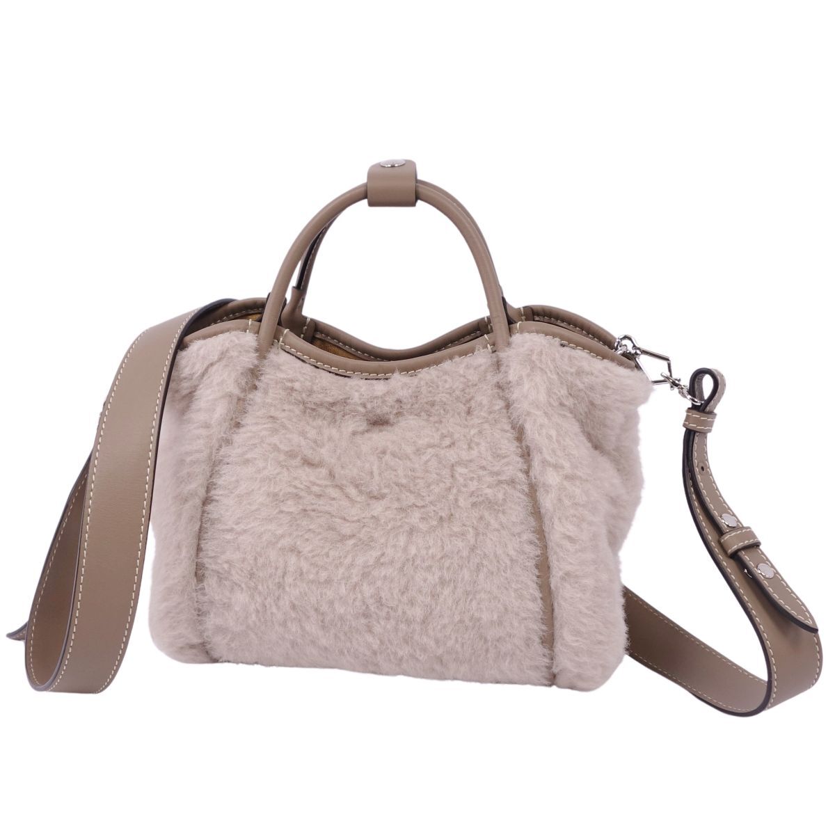 | 美品 マックスマーラ Max Mara テディベア Tマリン スモール マリンバッグ ウール シルク カバン グレージュ |