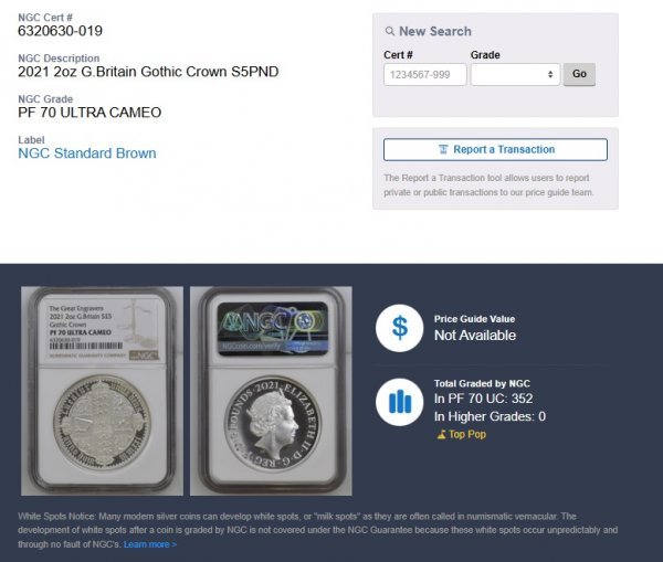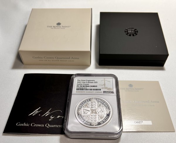 | 商品説明 | 多くのオークションの中から私の商品に興味を持って頂きましてありがとうございます。 2021年イギリスより発行された5ポンド銀貨 NGC鑑定 PF70 Ultra Cameoです。 1847年にヴィクトリア女王の在位10年を記念して発行された、説明不要なほどに有名なコインの復刻版です。 十字型に配置したイングランド(3頭の獅子)、スコットランド(獅子)、アイルランド(ハープ)の盾と各地域の象徴であるバラ、アザミ、クローバーのモチーフが描かれています。 詳細 ■発行 : イギリス ■材質 : 銀 ■純度 : .999 ■重量 : 62.42g ■直径 : 40mm ■鑑定 : NGC PF70 Ultra Cameo ■付属 : 元箱 COA 冊子付 ■発行枚数 : 限定 3,750枚 NGC Proof 70 Ultra Cameo 鑑定済み 表面・裏面ともに美しく、傷や汚れはございません なお素人の撮影の為、光や影の映りこみがあることをご了承ください。 状態は写真での判断をお願い致します。 不明な点等ございましたら質問してください。 分かる範囲で回答します。 |