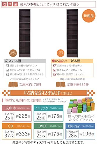 | 商品名 | JKプラン MEMORIA オープン 本棚 文庫本 ラック 棚板 可動式 1cm 間隔 薄型 幅 41.5 ダークブラウン | ||||