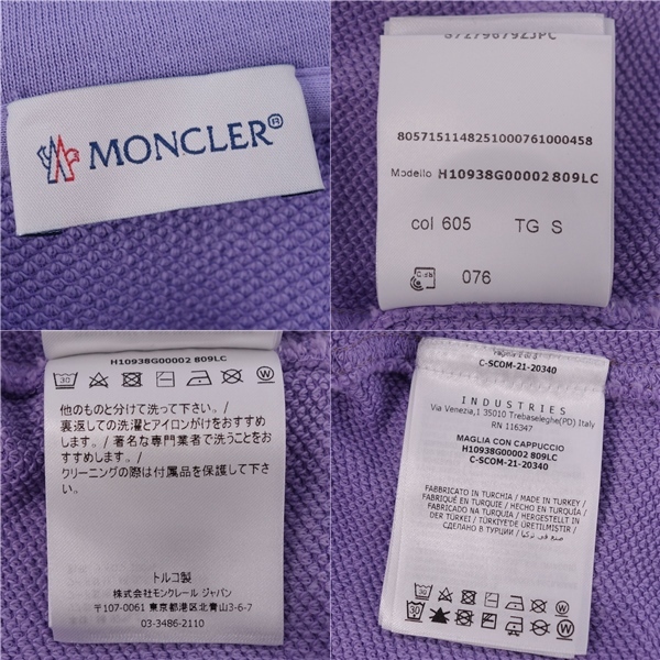 | 美品 モンクレール MONCLER パーカー 2021 フーディー スウェット プルオーバー コットン トップス メンズ S パープル |