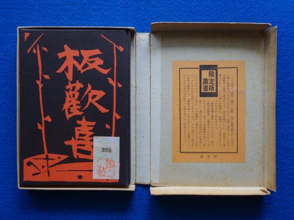 印・蔵印:本体の表紙側見返しに印1個・奥付の反対側に印1個、函の表面に印1個。