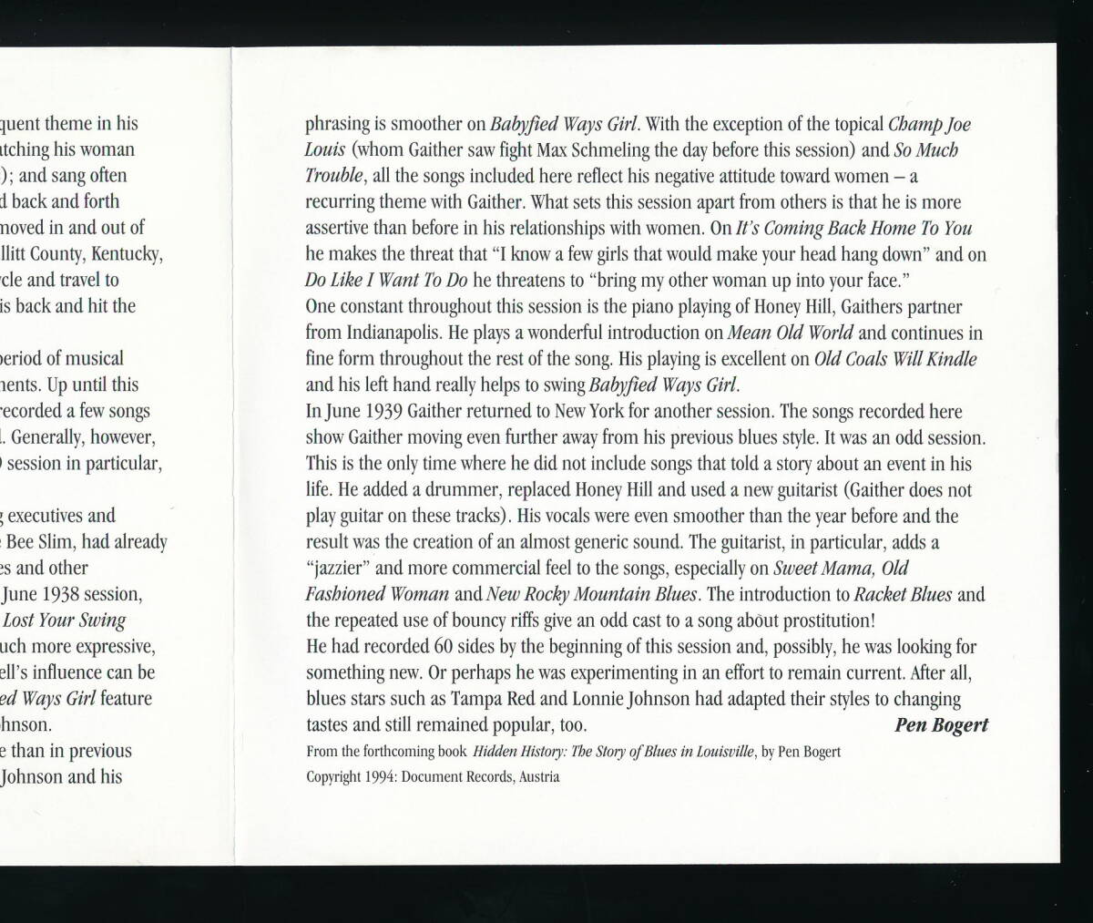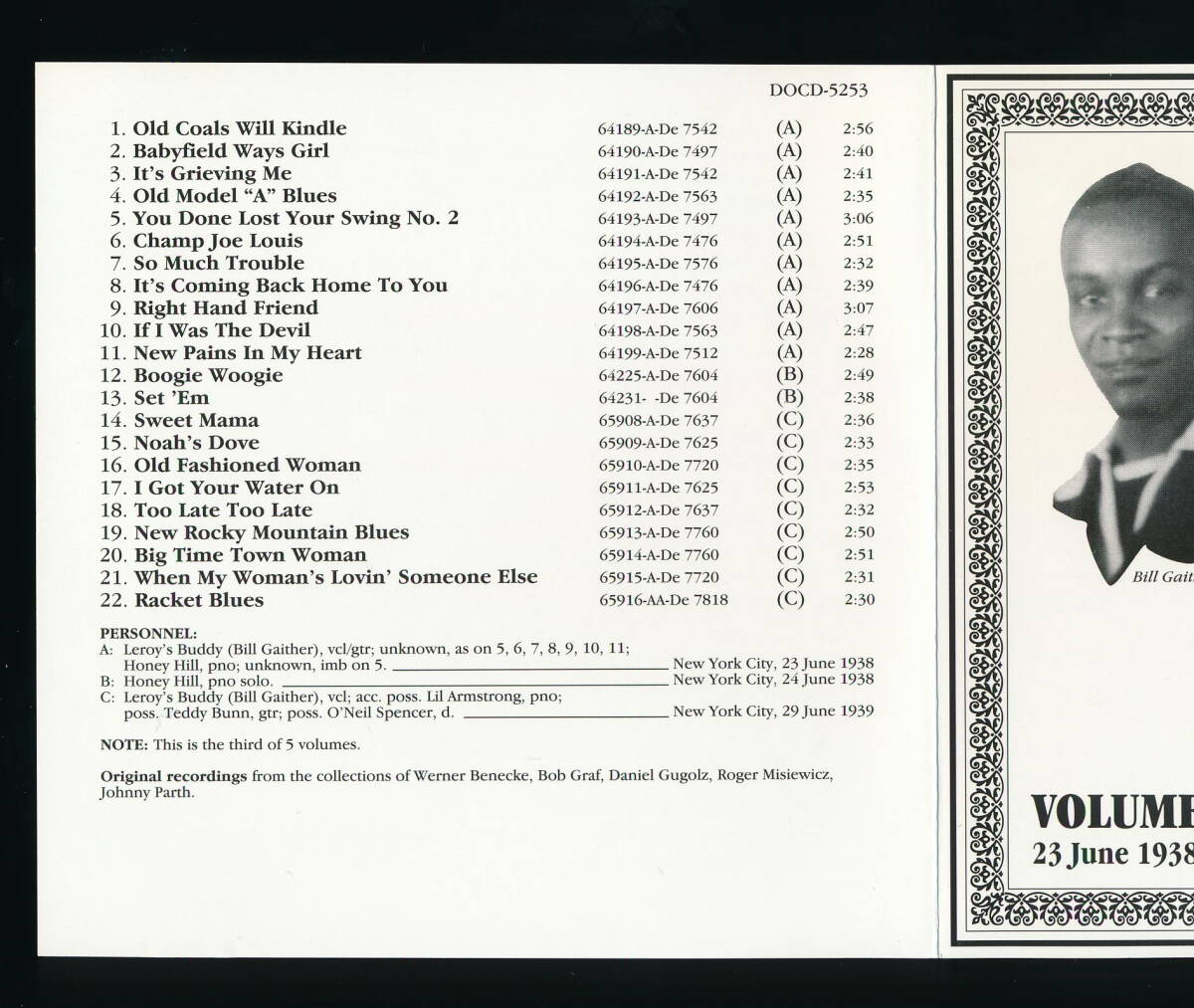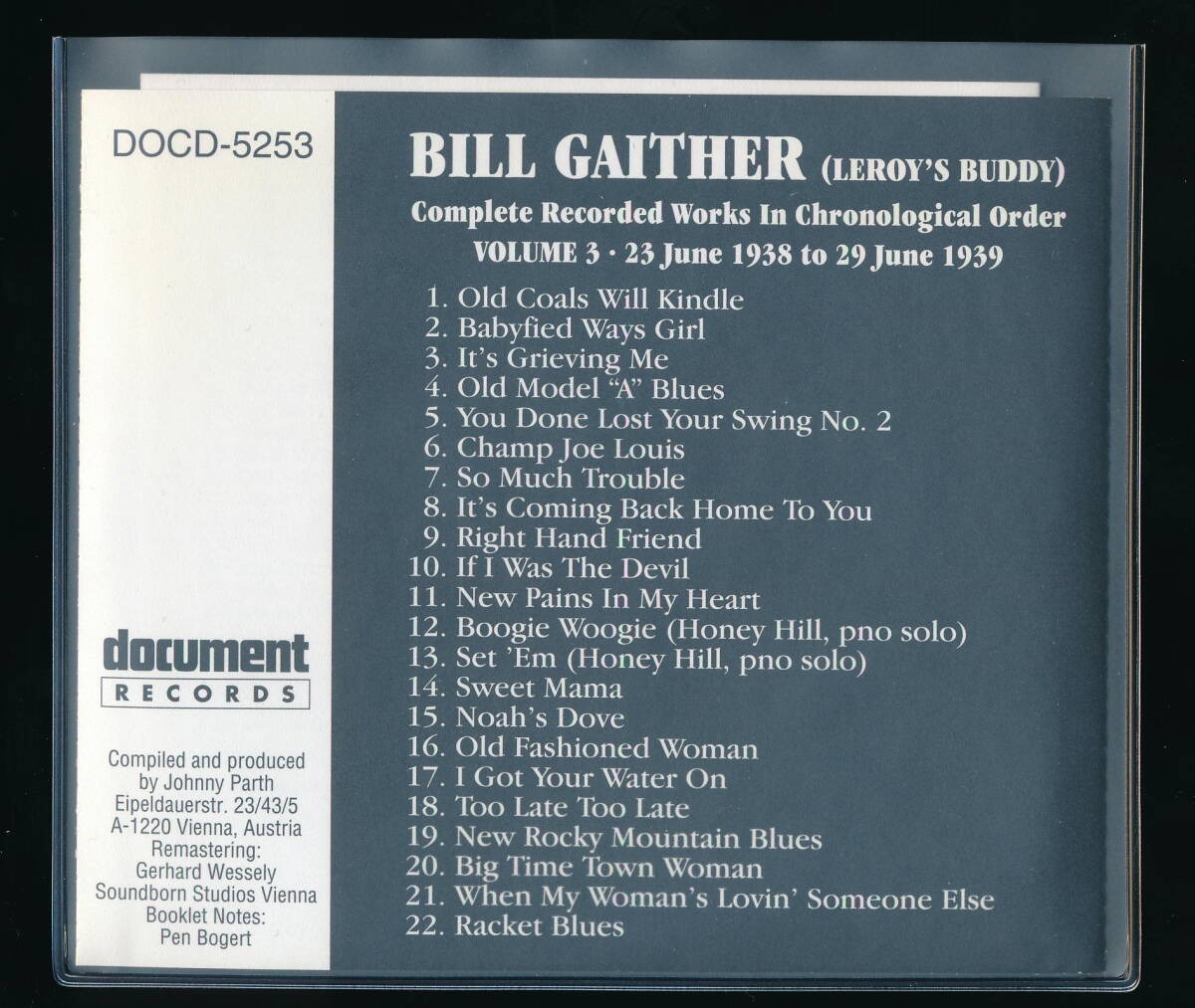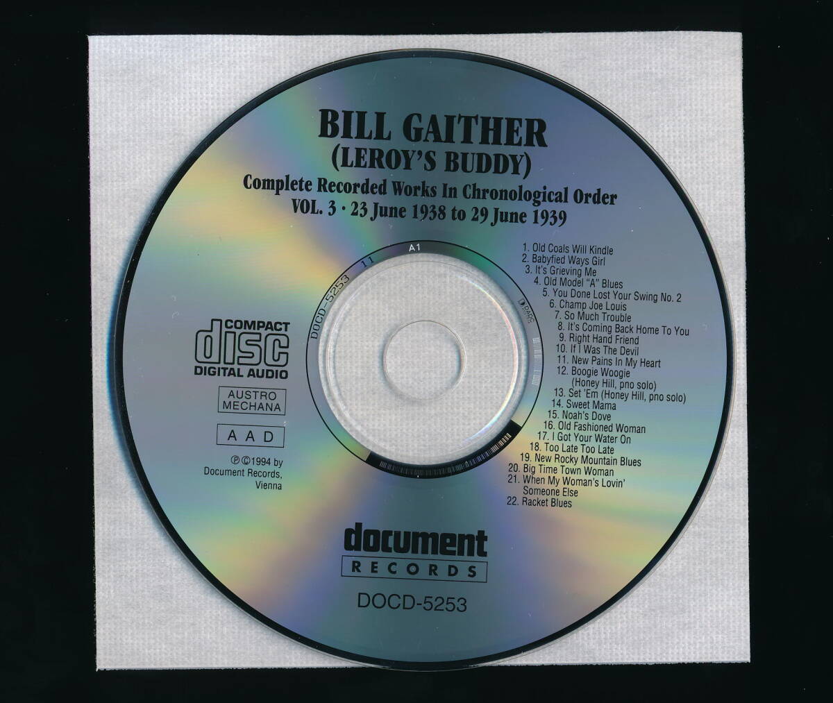 BILL GAITHER (LEROY'S BUDDY)のCD「COMPLETE RECORDED WORKS IN CHRONOLOGICAL ORDER VOLUME 3 (1938-1939)」の輸入盤・中古品です。