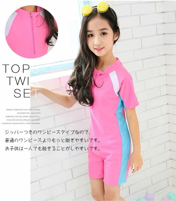 速乾、通気、サラッと快適な素材を採用し、光沢感があり、軽くて気心地のよいワンピース水着、海やプールだけでなく、スイミングスクールや幼稚園?保育園にも最適です。