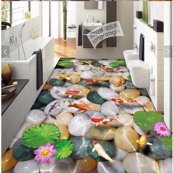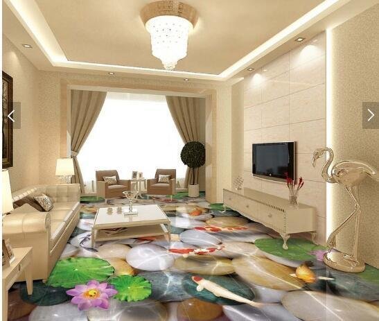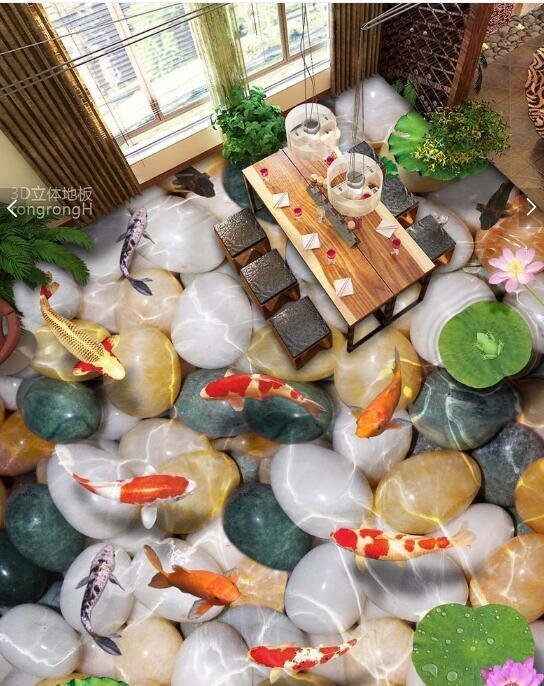 C613 巨大 3D フロアマット 1m*1m* 和モダン 形成池 鯉 滝 風景 景色 リフォーム 防音 断熱 滑り止めシート 床 壁 天井 はがせるシール