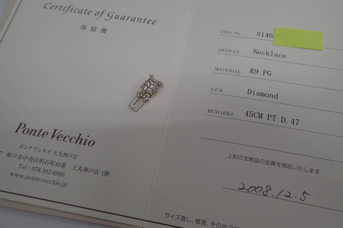 | 商品説明 | 35/美品 ポンテヴェキオ K9PG ピンクゴールド EME エメ ダイヤ計0.47ct ネックレス ① です。 |