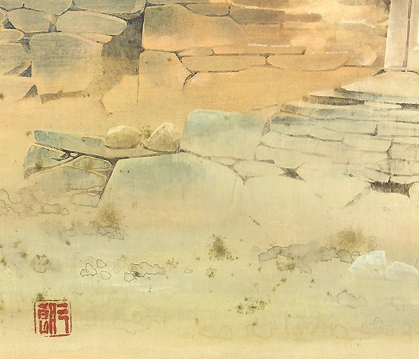 ● 作品寸:45.7×65.3cm 紙本・彩色 作品状態は概ね良好(下部地面にしみあり)