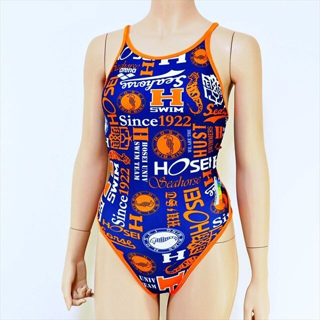 ビビッドなネイビー×オレンジの配色に、 「H」ロゴ / タツノオトシゴ/ Since 1922 など | 法政大学を象徴するようなモチーフが散りばめられた、存在感抜群のグラフィック。 希少性が高く非常にレアなお品です。 |