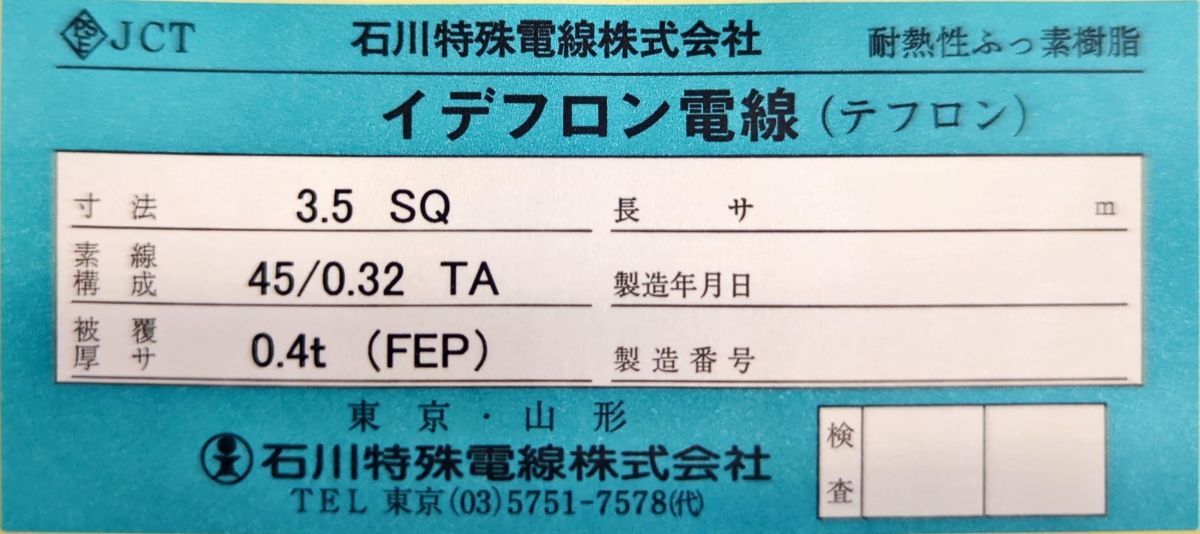 石川特殊電線の600Vふっ素樹脂絶縁電線です。【工場直送・送料無料】| 出价者 | 信用 | 价格 | 时间 |