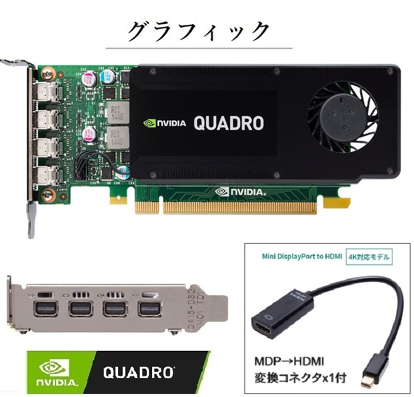 GPU メモリ4GB GDDR5 最大同時表示数ダイレクト ×4、DP 1.2 ×4、マルチストリーム 最大解像度:DP 1.23840 x 2160 60 Hz 最大解像度:DVI-I DL 2560 × 1600 60 Hz グラフィックス API - Shader Model 5.0、OpenGL 4.5、DirectX 12.0 コンピュート API - CUDA、DirectCompute、OpenCL |