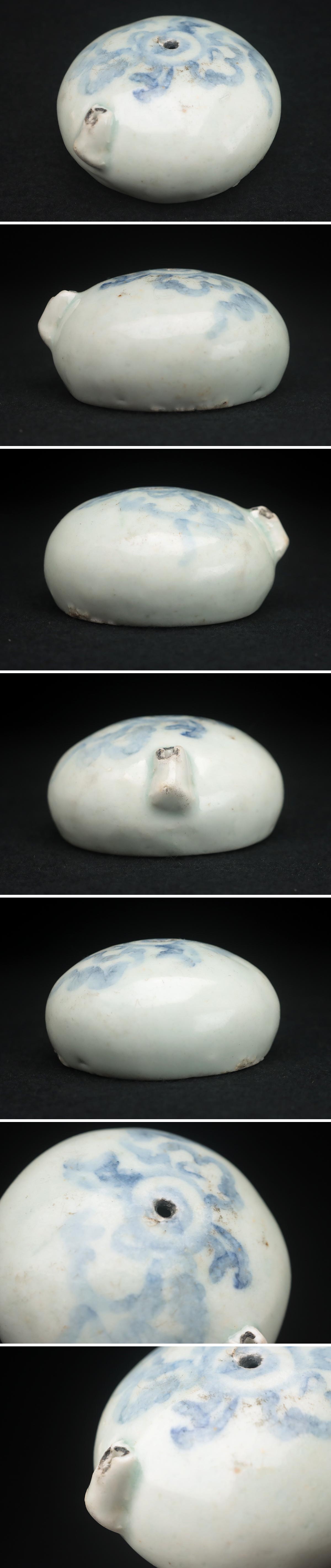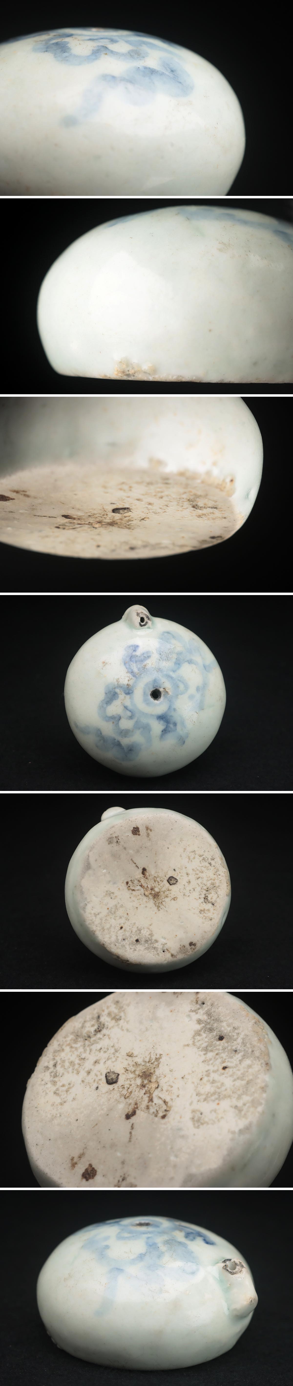 | ◆ 朝鮮美術 李朝 白磁 染付 草花文 水滴 幅6.5cm・青花花卉紋硯滴・青華水滴 書道具 朝鮮古陶磁 朝鮮古美術 ◆