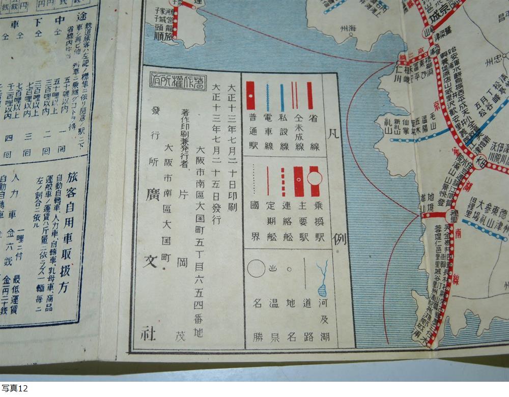 ※◎【本文の解説をよく読まれてご検討ねがいます。】 誠に申し訳御座いませんが24時以内に連絡、ご入金処理のできる方、および商品受領確認後に早急に取引ナビにて「受取連絡」のできる方のみ入札願います。 評価が新規の入札者様は入札の際、質問等で予め連絡ください。事前連絡がない場合はこちらで入札の取消(削除)を実施しますことを予めご了承願います。 転売業者の方は落札後「受取処理」の遅延、遅滞の発生率が極めて高いので入札をご遠慮願います。 商品名 : ★ 大正レトロ 最新鉄道地図 旅館運送店案内 大正13年 1924年 【現状品】★ 付属品 :なし。 商品詳細:大正13年の鉄道路線地図の現状品です。 全体的に経年劣化によりシミ、汚れあります。外観は画像にてご確認ください。 現状でのお渡しとなります。 以上ご興味のある方説明文をよく読まれた上、入札頂けます様お願い申し上げます。 説明文の理解力の無い方、思い込みの激しい方はくれぐれも入札しないで下さい。 入札終了まじかのご質問もお答えできませんのでご了承下さい。 到着後の使用方法等などについてサポートは出来ませんので予めご了承ねがいます。 入札の取り消し、キャンセルは出来ませんのでお間違えないようにお願致します。 発送は日本郵便(株)のゆうパケットポストを予定してます。 以上宜しくお願いします。 |