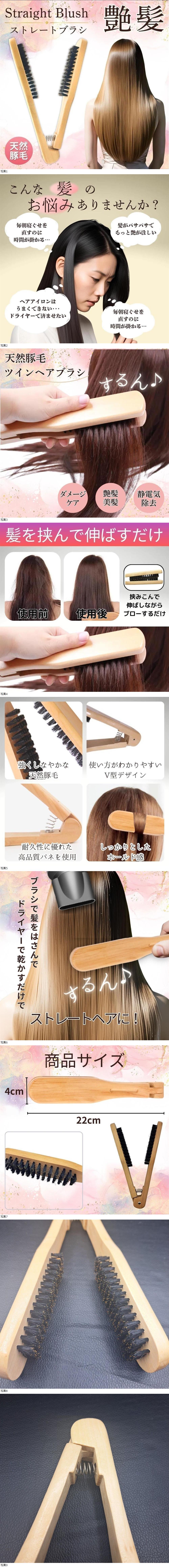ヘアブラシ ツインブラシ 豚毛 ドライ ストレートヘア用 天然木 艶髪 ヘアケア 美髪 ブラッシング 頭皮ケア 静電気防止 くせ毛 オイル [浏览原始页面]