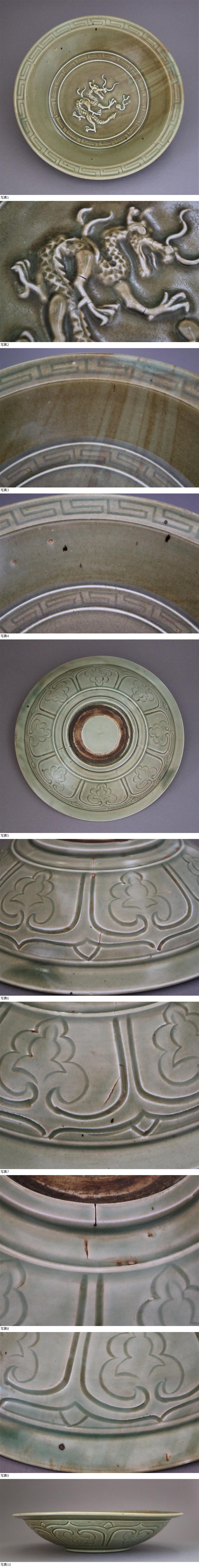 | 【GTS】★中国元・青磁貼花龍文深皿13~14世紀 |