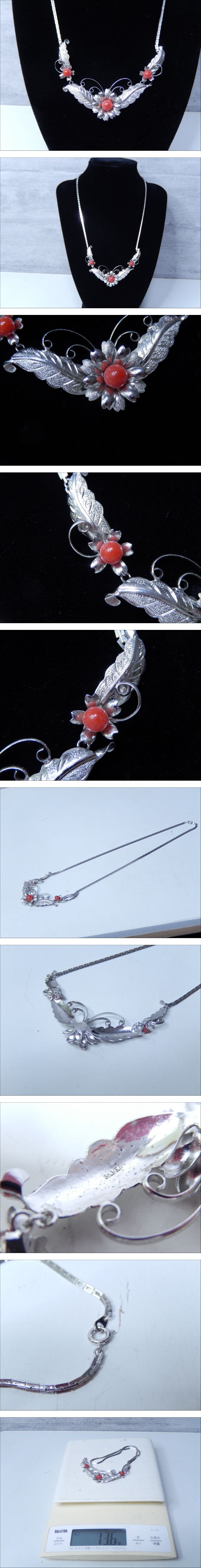 | 【管KA1188】10000円~ 本珊瑚 サンゴ 血赤サンゴ ネックレス SV SILVER コーラル 赤珊瑚 約13.6g | ||