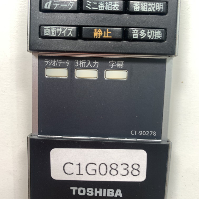 C1G838 【送料250円】 TV リモコン / TOSHIBA 東芝 CT-90278 動作確認済み★即発送★ テレビ
