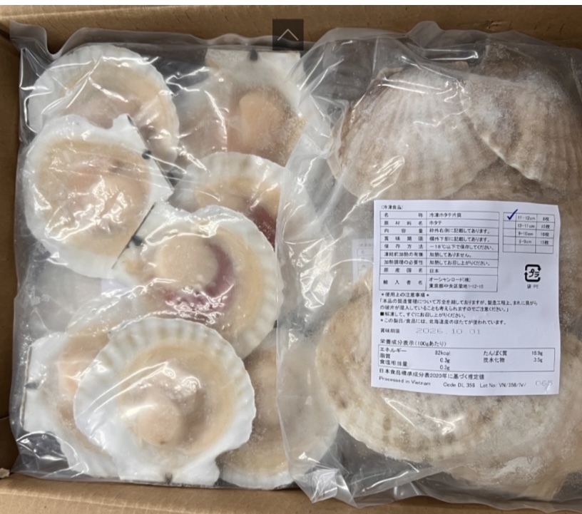 ◆商品説明◆| 商品名 | 【北海道産】片貝ホタテ 2Lサイズ 殻付き 11/12cm IQF |