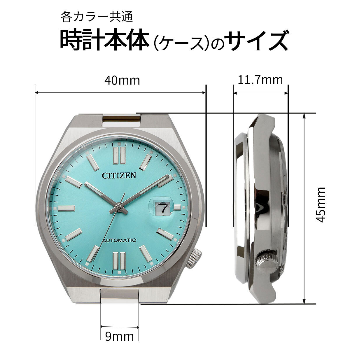 機能 | 秒針停止機能、振動数:21,600回/時、石数:21石、日付表示、日付早修正機能、夜光(針+インデックス)、シースルーバック、三ツ折れプッシュ式バックル | |||||||||||||||||