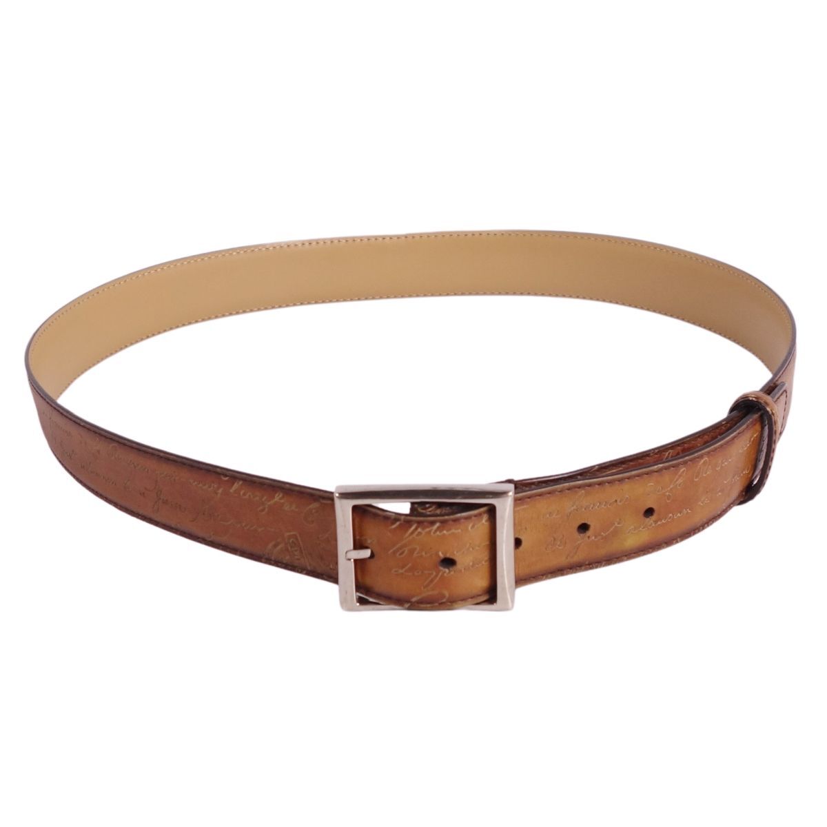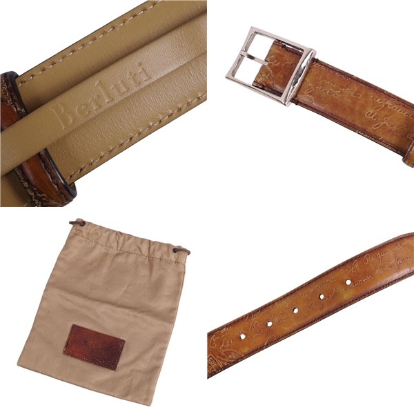 | ベルルッティ Berluti ベルト レザーベルト バックル カリグラフィ スクリット レザー メンズ スペイン製 100 ブラウン |
