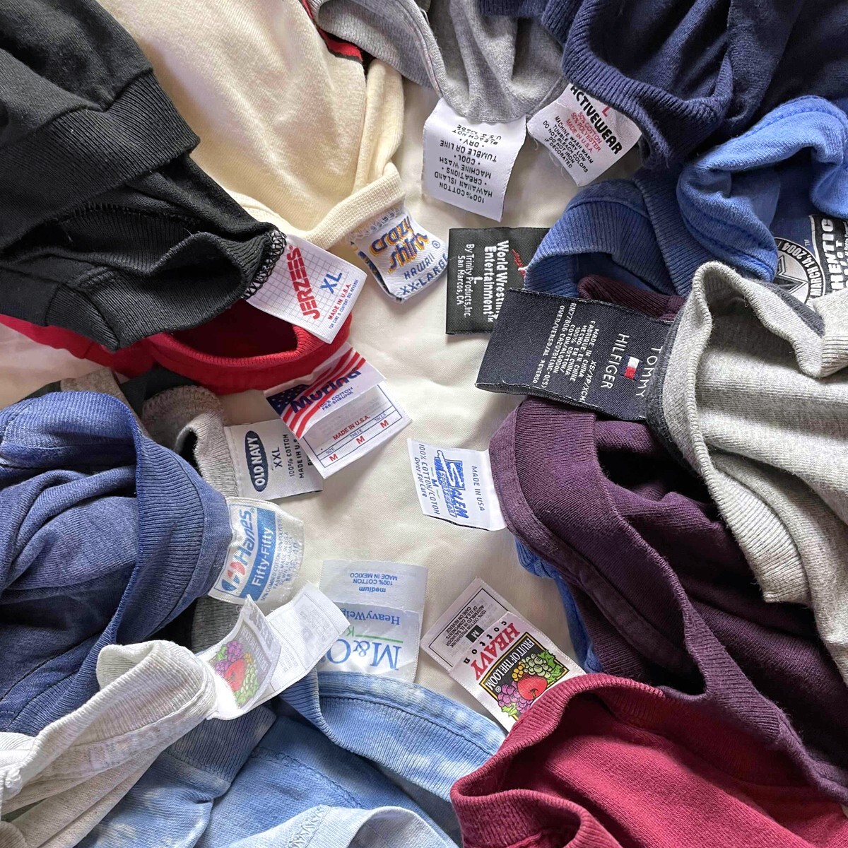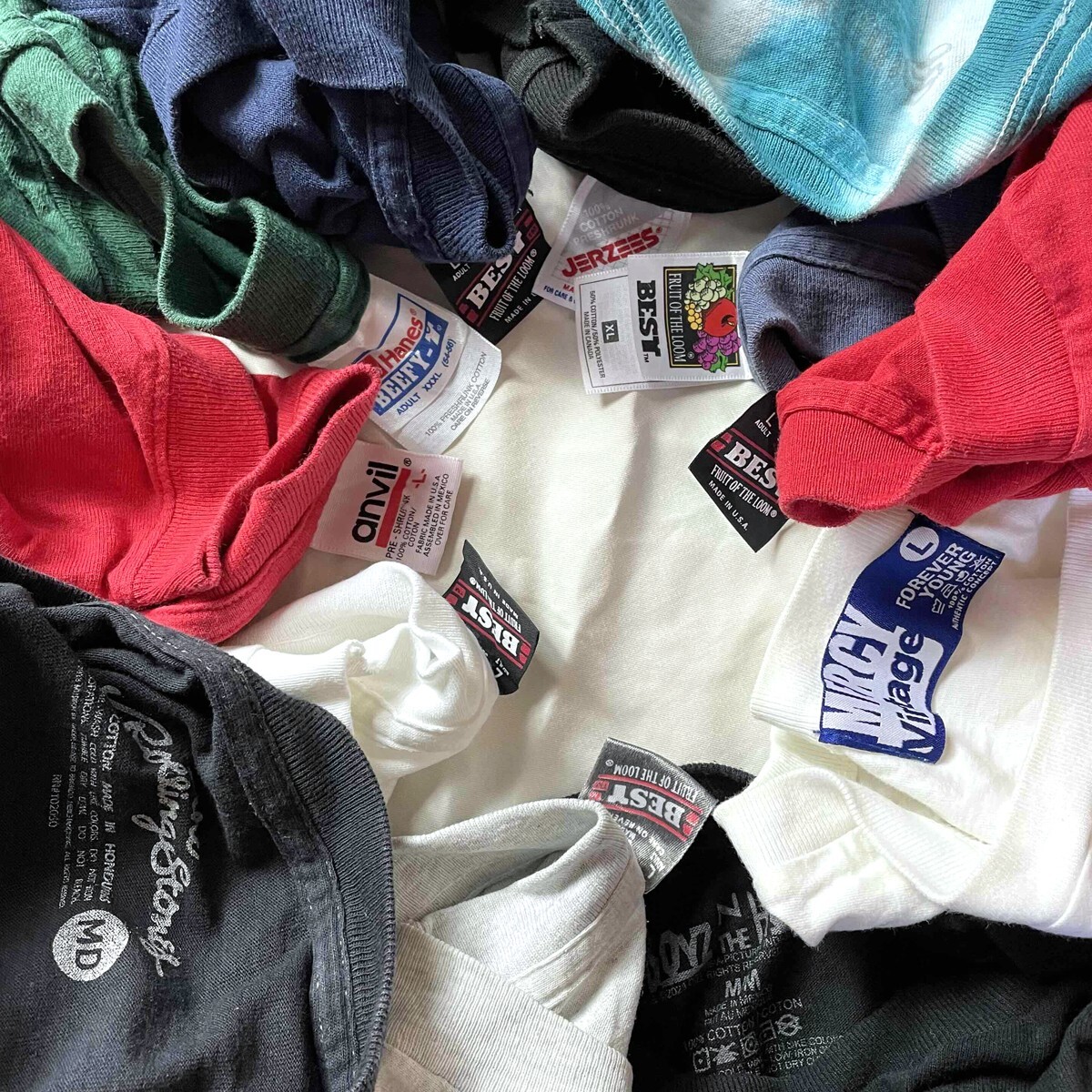 ブランド ヘインズ / フルーツオブザルーム / murina / クレイジーシャツ M&O / アクティブウェアー / アンビル / オールドネイビー / トミーヒルフィガー バンド系 → サブライム / ローリングストーンズ / ムービー系 → ボーイズン・ザ・フッド 商品説明 人気ブランド&ヴィンテージ Tシャツ25枚まとめ売り 80s~90s、USA製、シングルステッチを含む バンド / 企業 / ムービー / アニメ / スーベニア / 化学 / カラーやサイズのバランス感もよくトレンド感満載のお得なラインナップ コレクターの方、フリマやお店用の仕入れ目的の方(業者様大歓迎!!)にもオススメ アメリカ製半数以上で1枚辺りの単価が激安になります 年代 80s / 90s / 00s 生産 アメリカ製 / カナダ製 他 カラー 黒 / 紺 / 赤 / 白 / 緑 / グレー 素材 コットン / ポリ ( シングルステッチあり ) サイズ |
