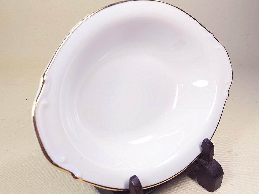 ●簡要説明:この出品は、昭和レトロ 手工芸金縁カレー皿 シチュー皿 3枚/組セットです。3客/組揃っています。日本製です。新品です。